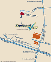 Travelling west along the A2, take the “Pepperhill B262 and Longfield (B260)” Junction. At the roundabout take the third exit signposted to “Canterbury A2 and Pepper Hill Superstore”, this takes you on a bridge over the A2 travelling north. At the second roundabout take the second exit (with Sainsbury’s on the left) signed for “Northfleet B262 and Superstore Deliveries” and continue along Springhead Road until you reach a crossroads with traffic lights. Turn left into Springhead Parkway and continue to the end of the road where you will find the Eastgate Centre on your left.